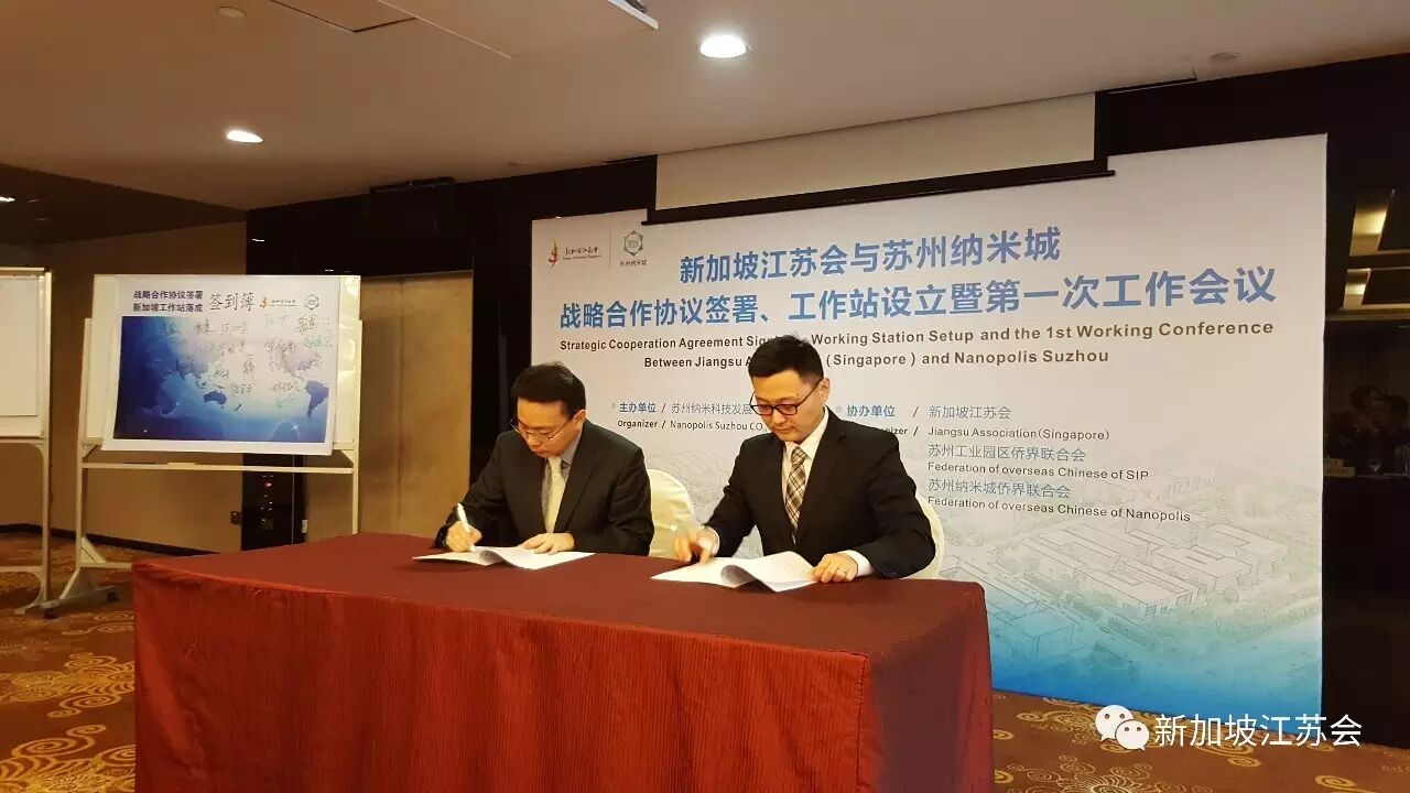 江苏会周兆呈会长和苏州纳米科技发展有限公司张峰副总裁在新加坡签署了一系列的战略合作协议,促进新加坡和苏州在纳米科技方面的合作。