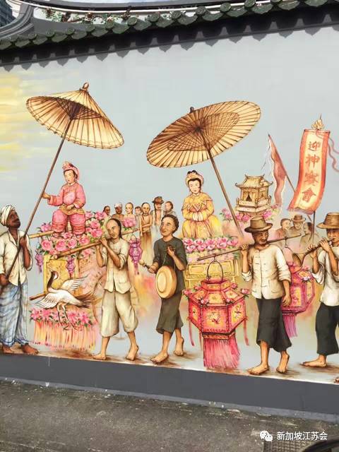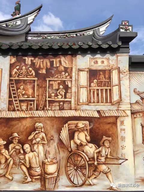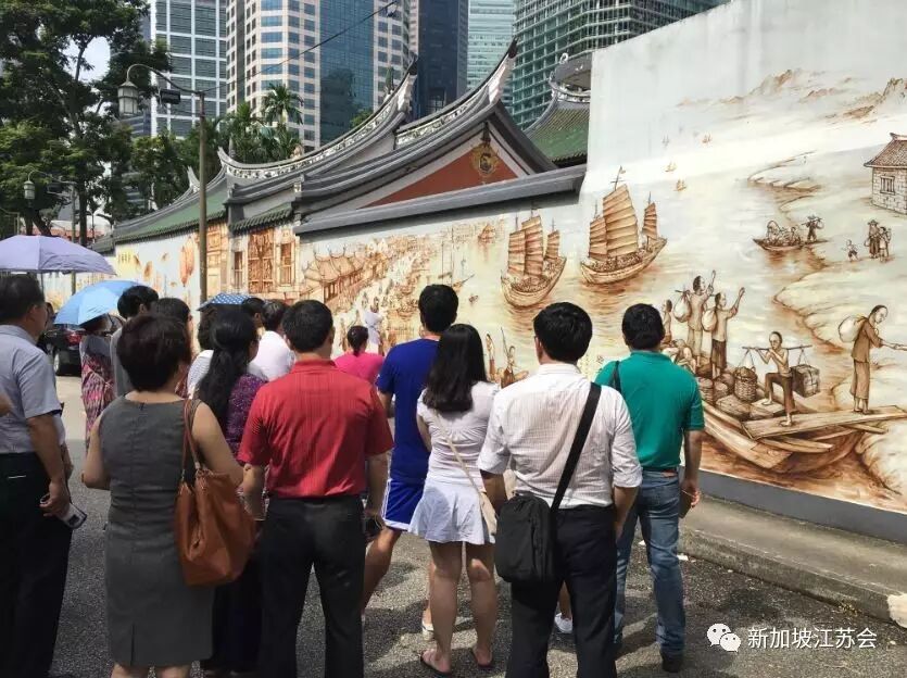 4月22日下午,在会长周兆呈博士、副会长丁文锦、江建平博士的带领下,新加坡江苏会30余名会员参观了历史悠久的福建会馆天福宫以及由本地画家叶耀宗创作的天福宫40公尺长后墙壁画《乡情》,这幅壁画也是以“乡情—乡音—乡味”为主题的第六届新加坡福建文化节重点项目之一。