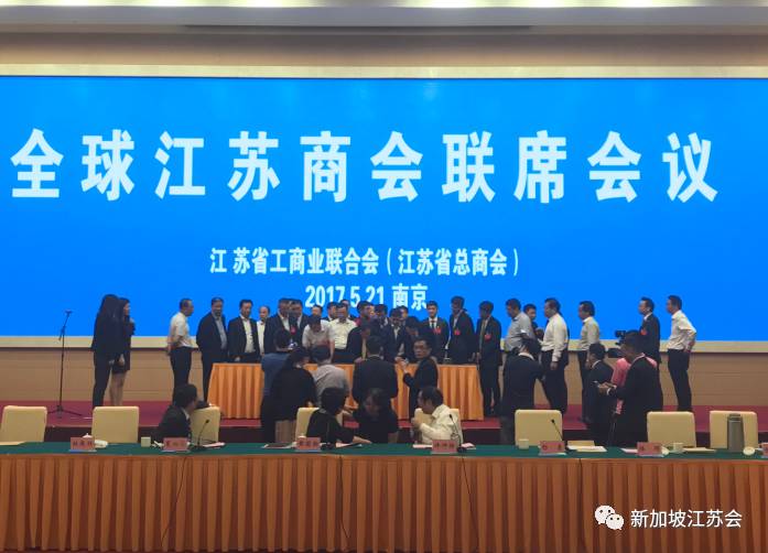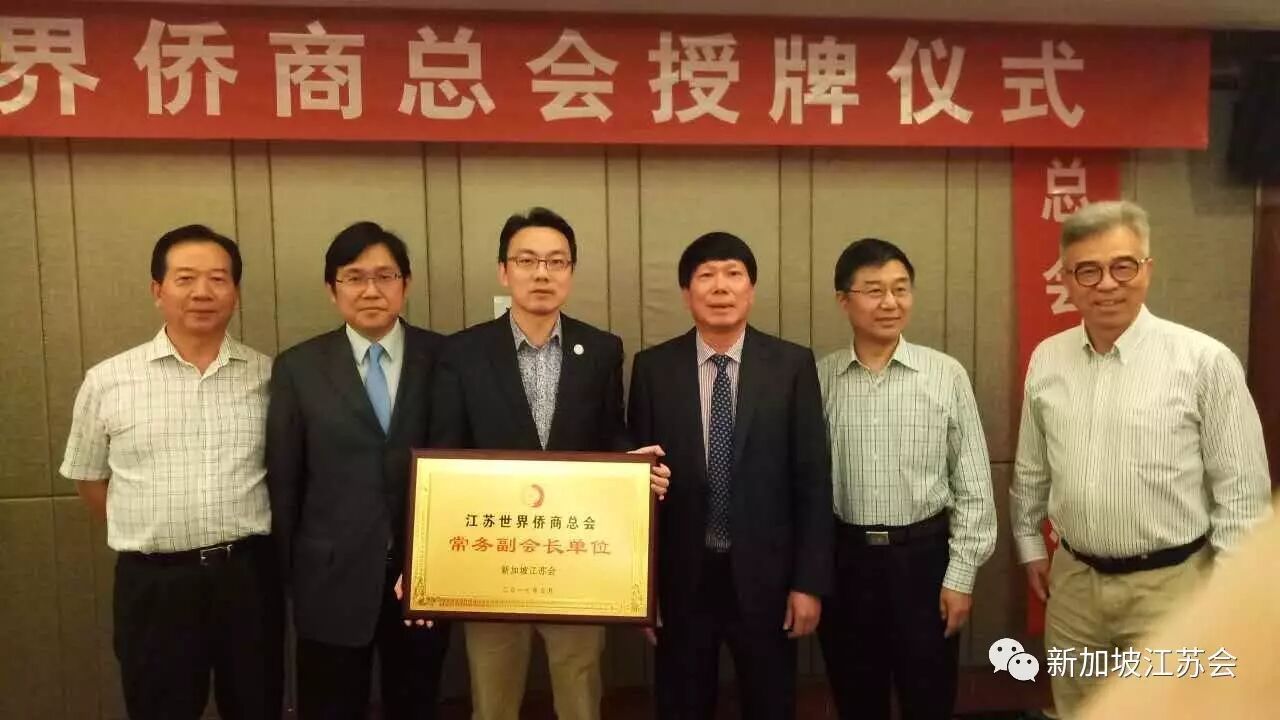 5月24日,周兆呈会长受邀参加江苏世界侨商总会授牌仪式并作为海外商会代表发言,新加坡江苏会担任常务副会长单位。